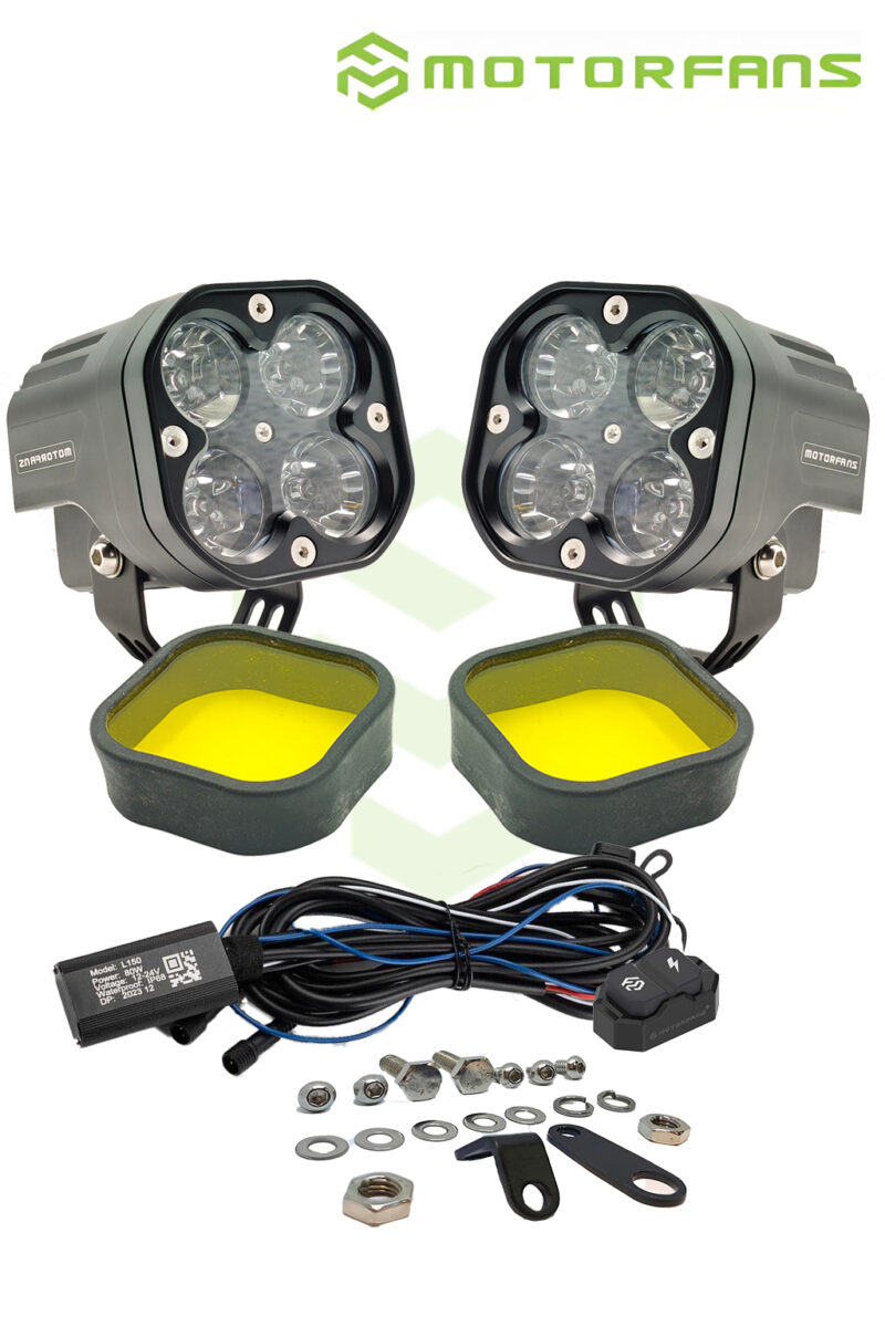 Complete Installation Kit – Includes clamps, wiring harness, switch, and amber filters.